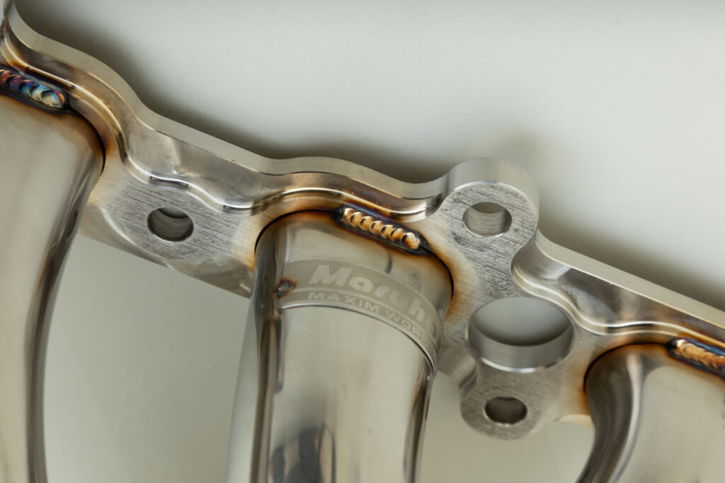 マルハモータースでは自社製造エキマニがあったが、その生産が難しくなった。そこで高性能なエキマニ製造で知られるマキシムワークスとタッグを組んで開発、製造。4-2-1集合方式でトルクを引き出す。美しい溶接で見た目にも楽しめる逸品。