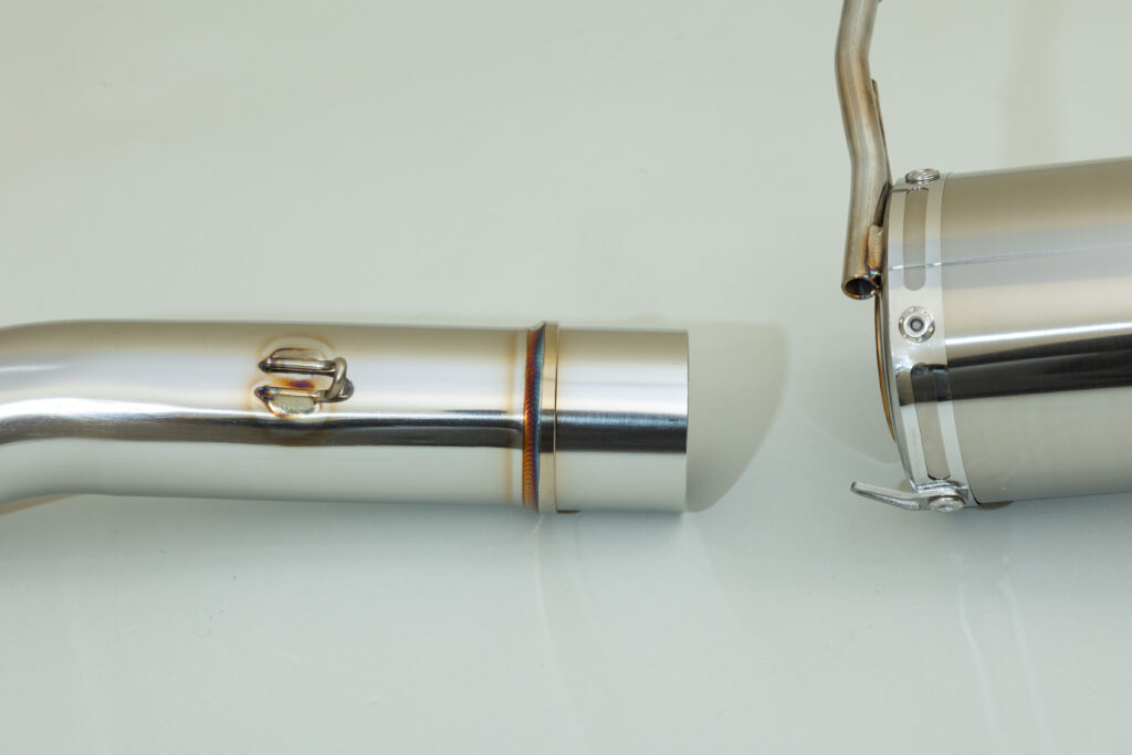仕上がりの美しさはもちろん、接続部は2重パイプになっていて、その間にパイプを差し込む方式。こうすることで排気漏れが起きず、性能を引き出せる。