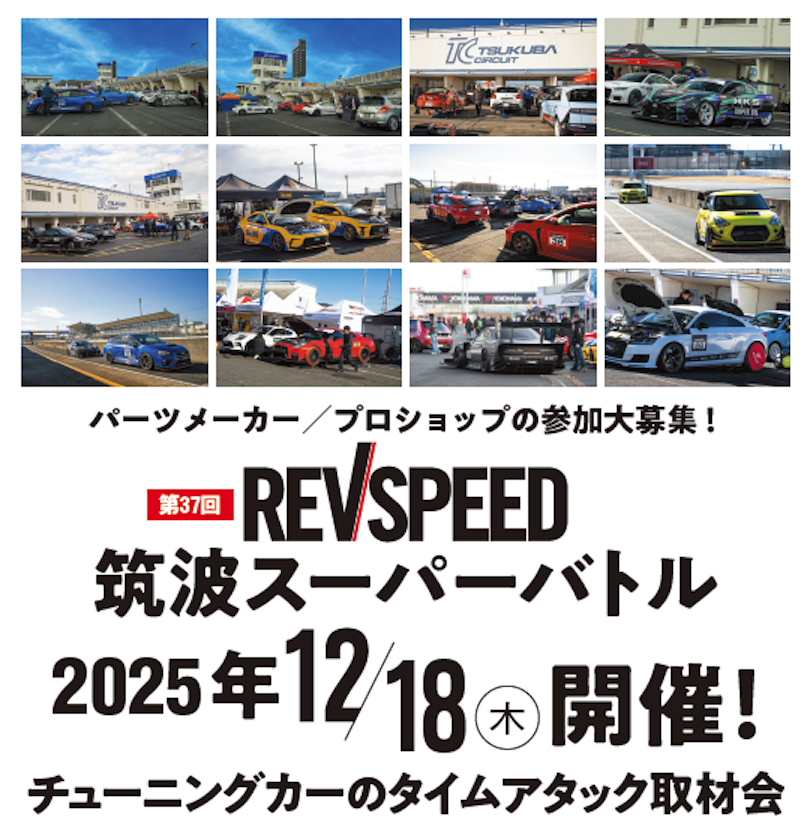 レブスピードでは毎年恒例の『REVSPEED筑波スーパーバトル』を2025年12月18日(木)に開催します。これはパーツメーカー/プロショップのデモカーによるタイムアタック取材会です。