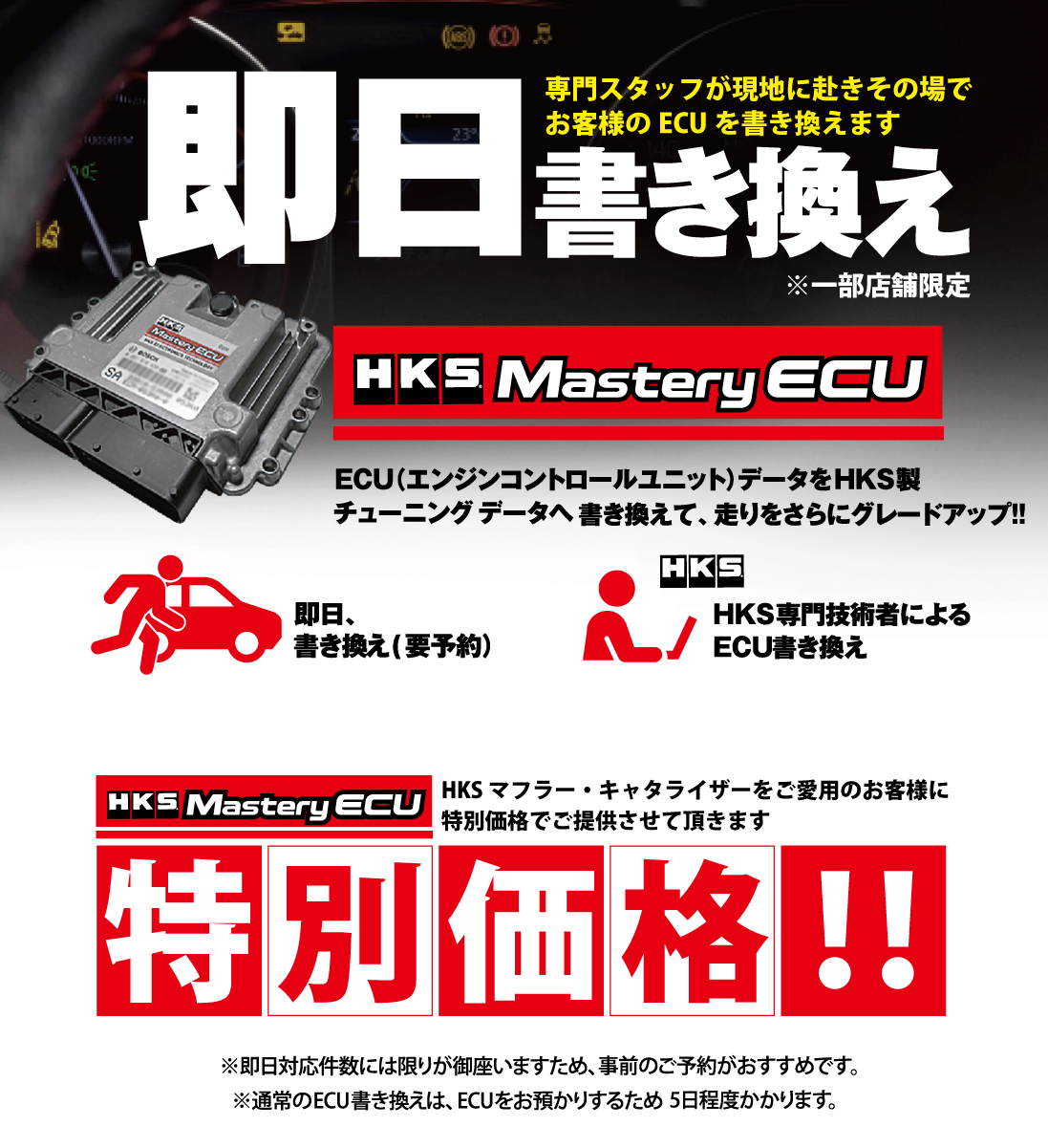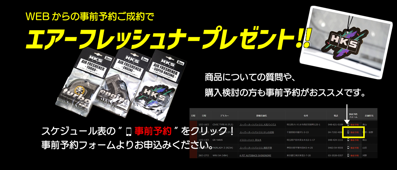 フェアでは、HKSの人気アイテムHIPERMAXシリーズ(車高調) や エキゾーストシリーズ(マフラー・キャタライザー) 他、カスタム満載のHKSデモカーで、乗り心地の変化と“快音”を自分の耳と体でチェック!!