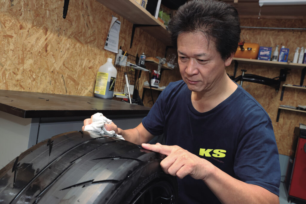 グリップや操作性の向上に トレッドの表面を削ってセッティング!