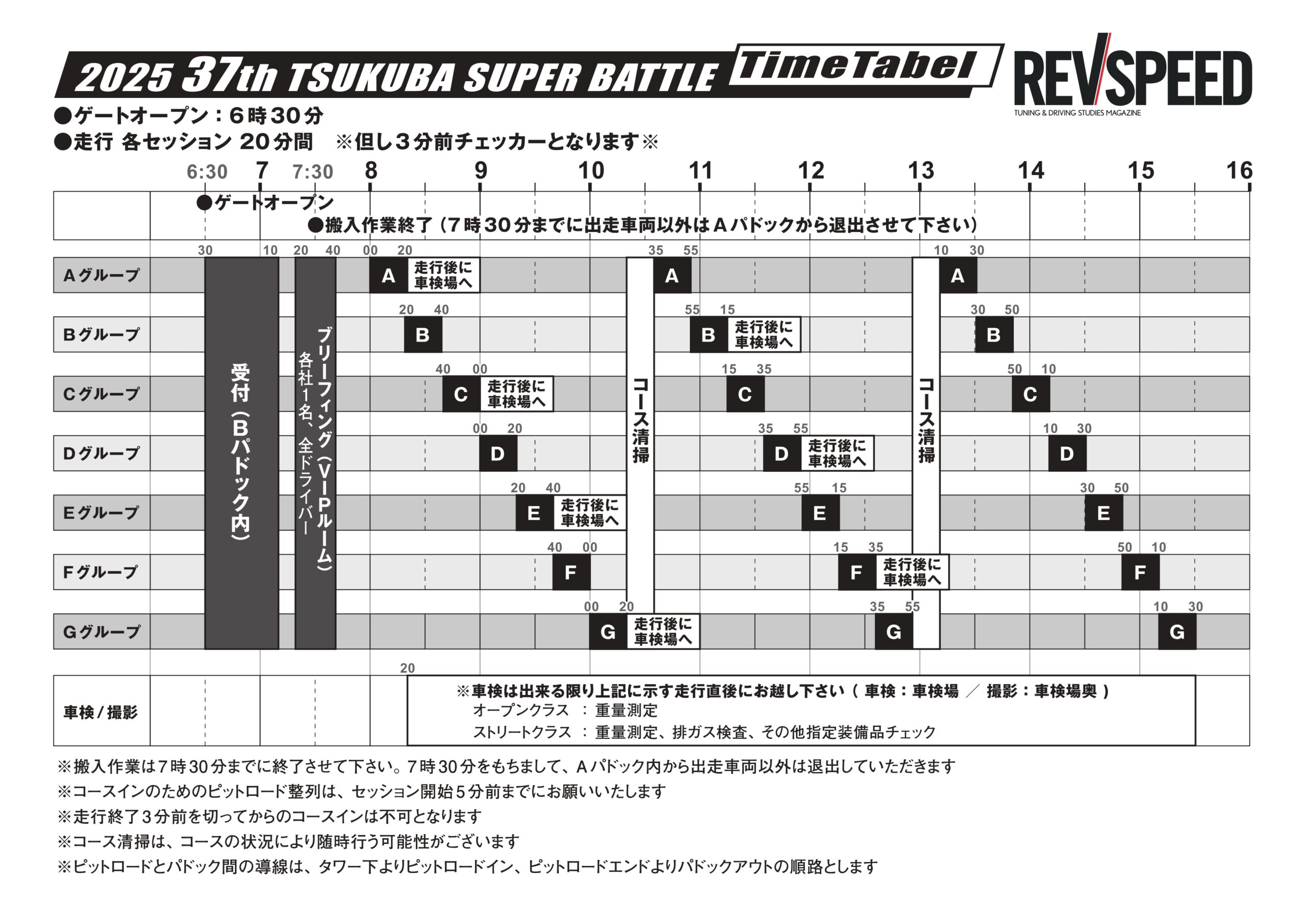 第36回レブスピード筑波スーパーバトル 走行グループ分け |