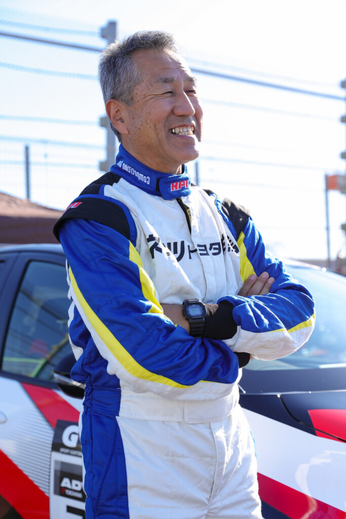 4年連続して全日本ジムカーナで使用している1.5L/6MTのヤリスを持ち込んだ斉藤邦夫選手。2025年シーズンは、最終戦で優勝し逆転で13回目となるシリーズチャンピオンを獲得した。