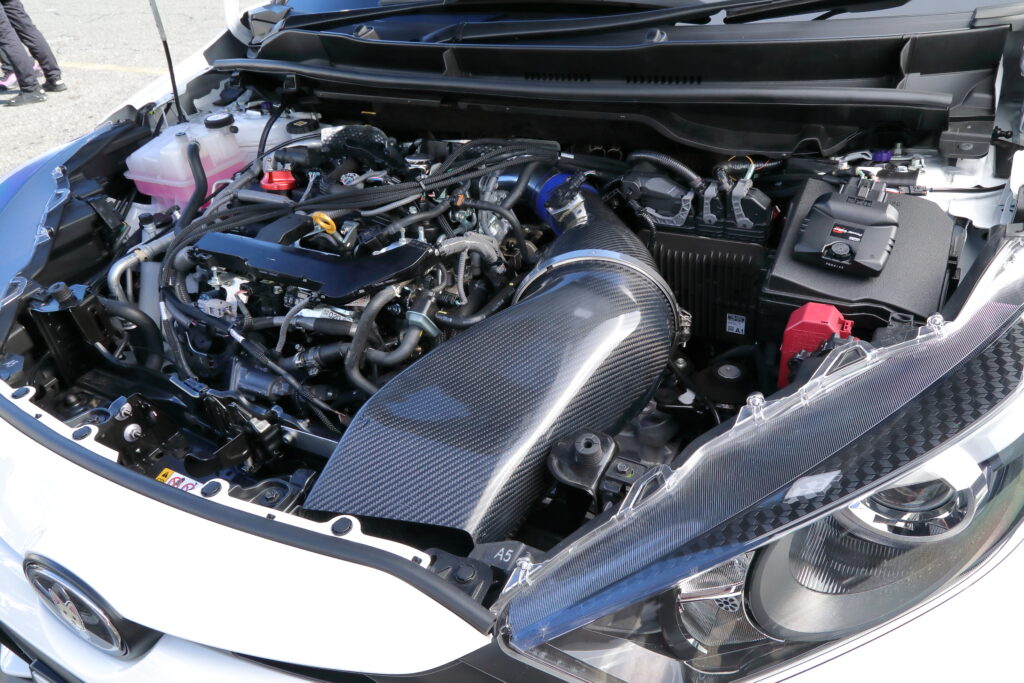 吸排気系+ブーストアップで365psを発生する。特別な軽量化もしていない仕様ながら、他のDAT車のヤリスに比べ、バックストレートの最高速計測ポイントで5㎞/hほど速かった。