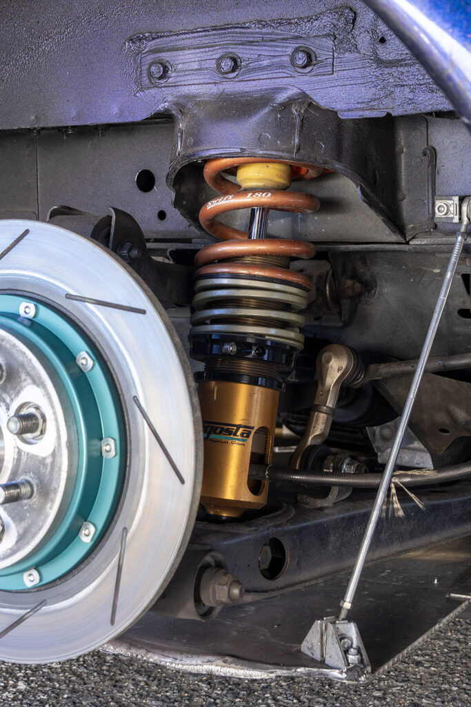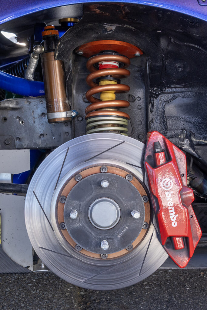 サスペンションは硬め過ぎず適度にストロークさせてタイヤを使う方向性だ。ダンパーは伸び圧を低速、高速で別々に調整できるアラゴスタ3Way式を装着し、アーム類はビロボール仕様に変更。