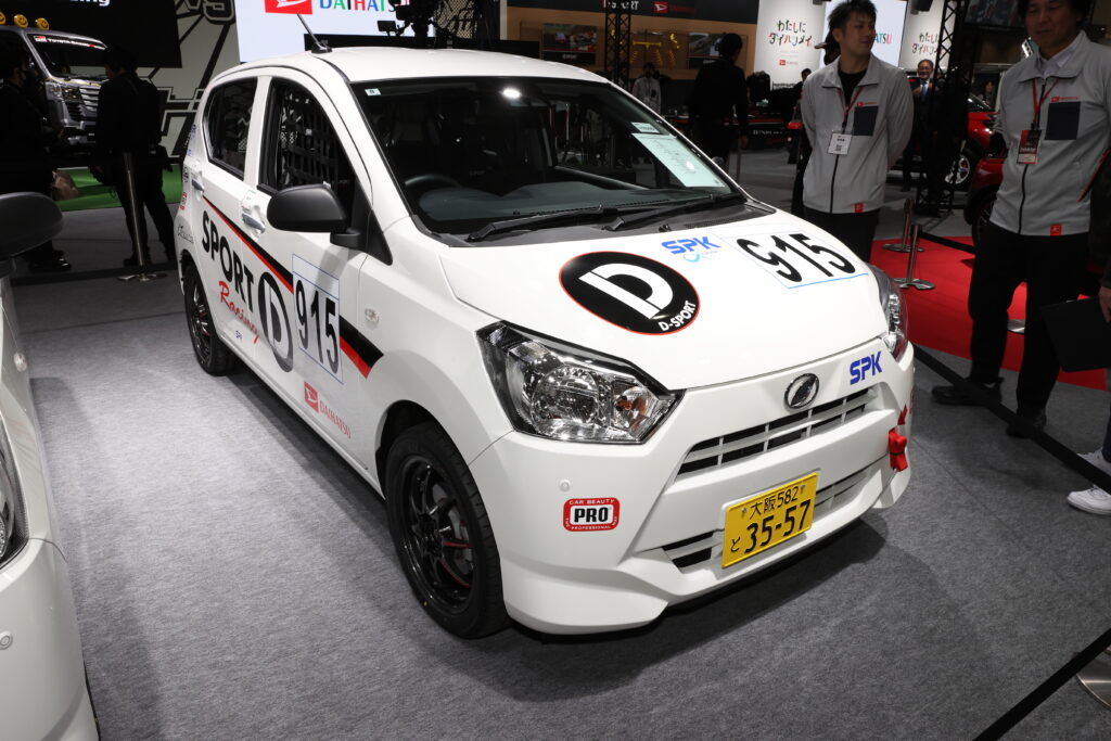 ミライース tuned by D-SPORTS Racingは2台並んでの展示。いずれも競技ベース車両で、ターボエンジン搭載の5速MT仕様。D-SPORTS Racingの ECUを備え、販売時に6点式ロールケージとL.S.D.が装備される。ブレーキはベンチレーテッドディスクに。タイヤは14インチだ。