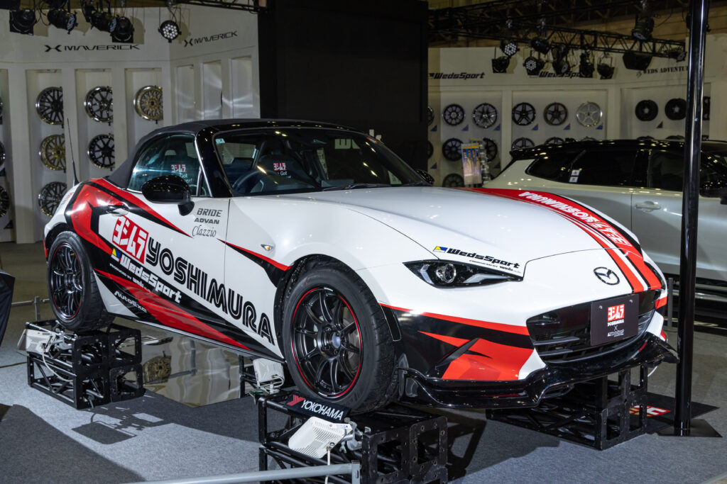 TC-105Xには、ヨシムラとのコラボによるロードスター対応のYOSHIMURA EDITIONが登場。サイズは16×7.5J inset36 カラーはSEMI MAT BLACKだ。