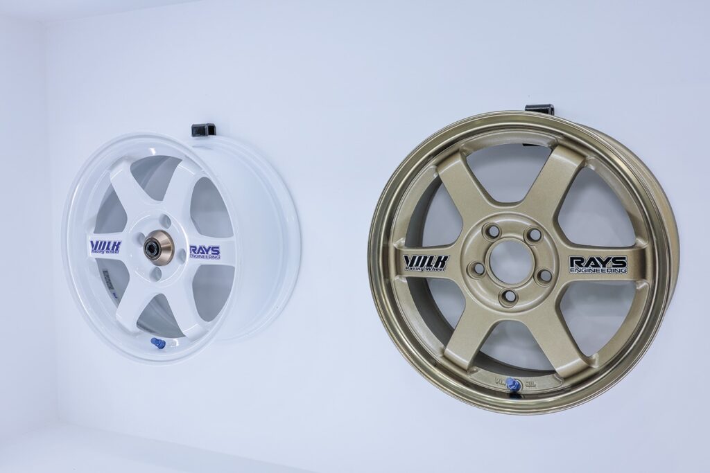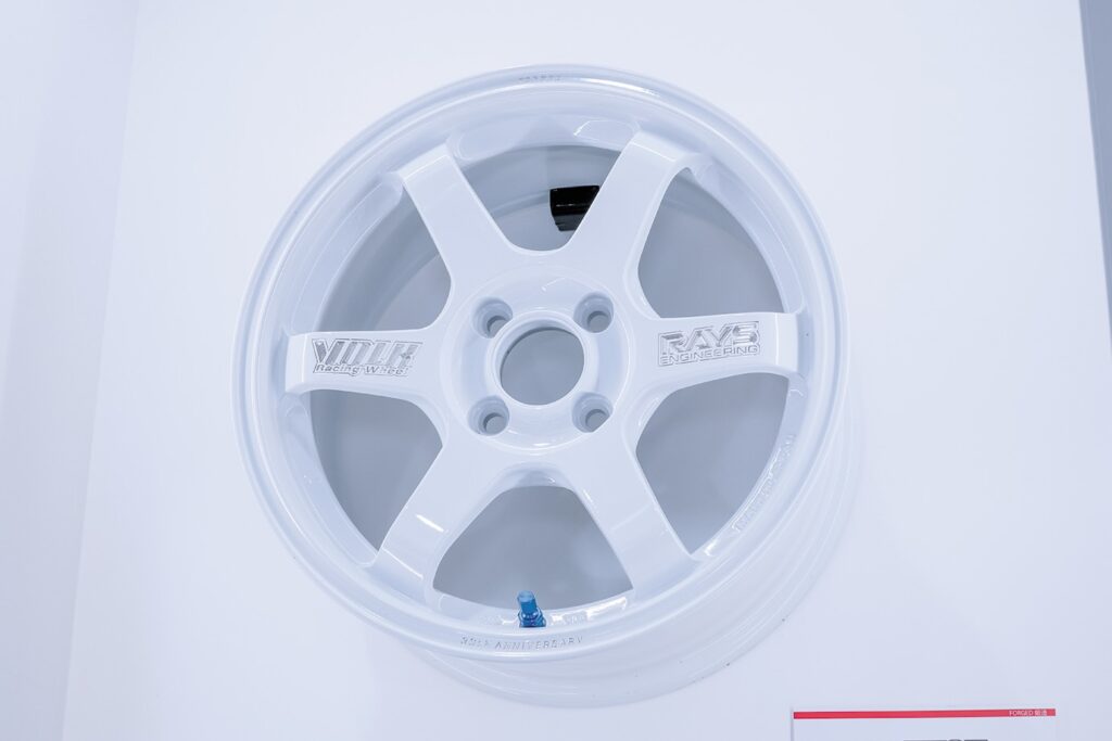 TE37といえばこの雰囲気。15インチで重量3.7㎏を引っ提げて登場の歴史。左右のロゴはステッカー仕上げ