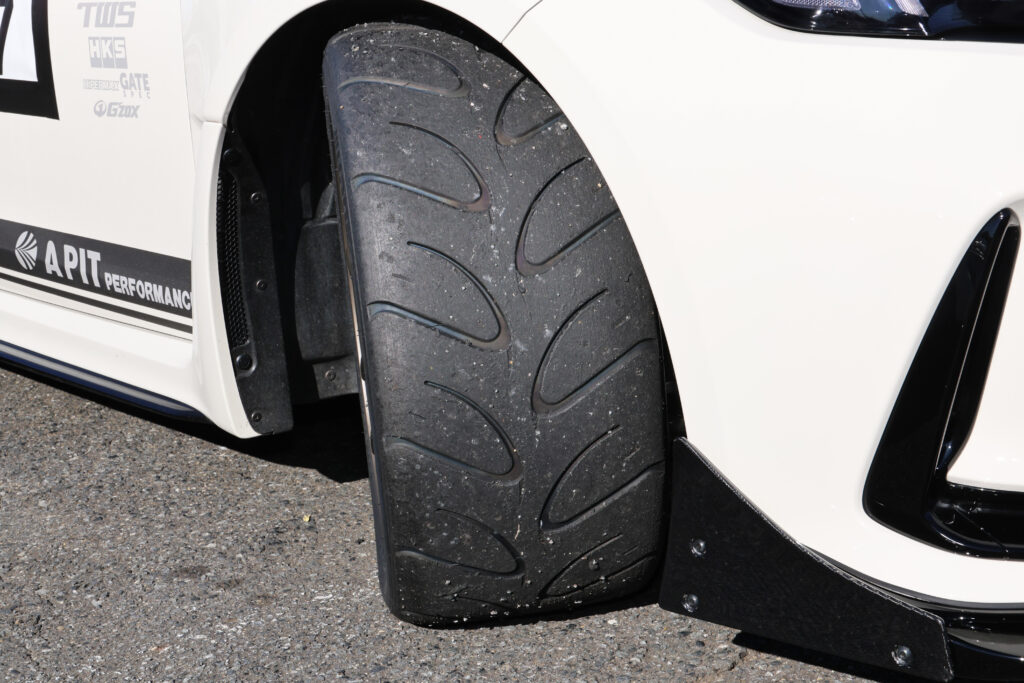 L.S.D.は自然に効いてFF向きというATSのカーボン2way。ブレーキはパッドのみG-maxで強化した。アライメントは、適度なキャンバーにトーがほぼゼロ。「挙動が穏やかで、しっかり4輪が使え、安心して攻められた。もっとパワーを上げても、対応できる足まわり」とドライバーの木下みつひろ。