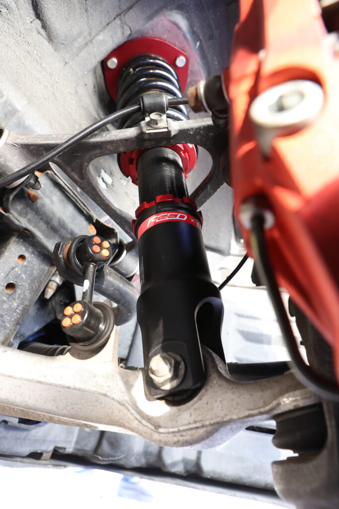 ノーマルの13B-MSPにスーパーチャージャーをボルトオン。プライマリーインジェクターはノーマルで、セカンダリーを1150ccに変更。後期型のデモカーはLINK制御だが、前期型はハルテックプラグインでの制御が可能だ。オリジナル車高調キットは試作品。A050は1本目がユーズドGS、2、3本目はユーズドA1だった。タイムは1本目のもの
