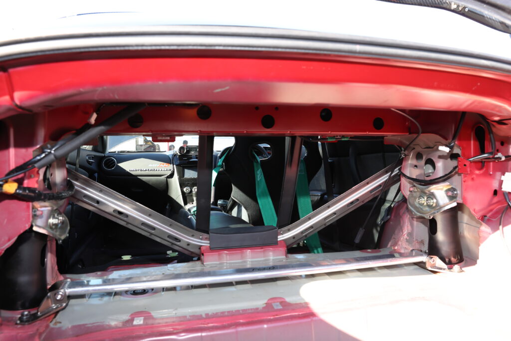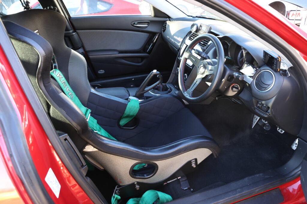 「パワー感はFD3Sのブーストアップのイメージで乗りやすい。1分0秒台が目標でしたが、軽量化なしで1分1秒台はまずまず。パワー的にタイヤは265サイズ、足の煮詰めとファイナル変更でさらにタイム短縮できます」と社員ドライバーの勝木崇文は語る。