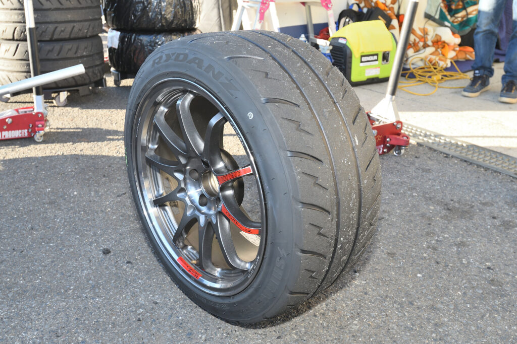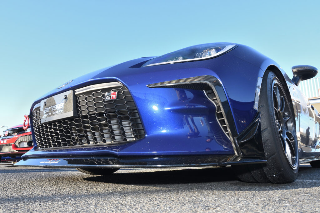 基本的にはドライバーに合わせるというアライメントも、コーナー奥で舵が効くよう、フロントのトーは岡山国際より開いたものになった。さらにオリジナルのフロントリップ部分にも下面がフラットになるアンダースポイラーを装着し、ダウンフォース向上でのターンインでの効果を狙った。