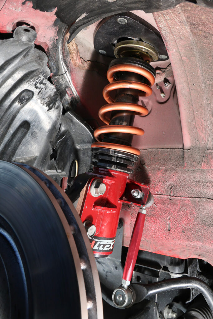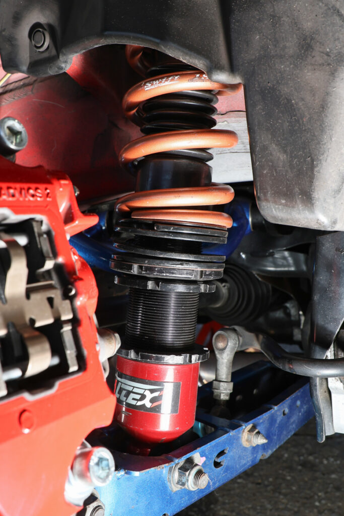 足まわりを変更し、前回から0.55秒の短縮を果たす。以前のストリート向け車高調キットは、アクセルONで、プッシュアンダーが見られた。