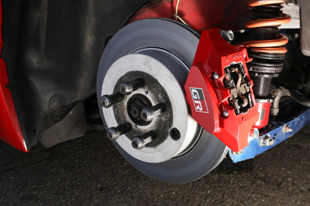 L.S.D.はATSのカーボンで、作動が滑らかに。ブレーキは前後にGRヤリス純正モノブロックキャリパーを流用し、パッドもコントロール性に振った。