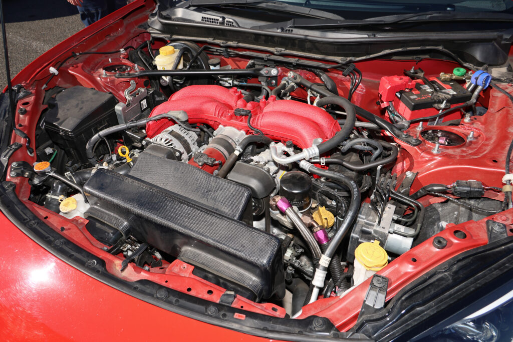 次はエキマニ交換でパワーアップを検討中。インマニは純正の結晶塗装仕上げ。車高調キットはアルテックスのオリジナルでサーキット指向を強めた新バージョン。フロントキャンバーは前回が3°で、今回が3.5°。ブレーキはGRヤリス純正キャリパーを前後に流用。純正をしのぐ制動力、コントロール性を谷川達也は評価した
