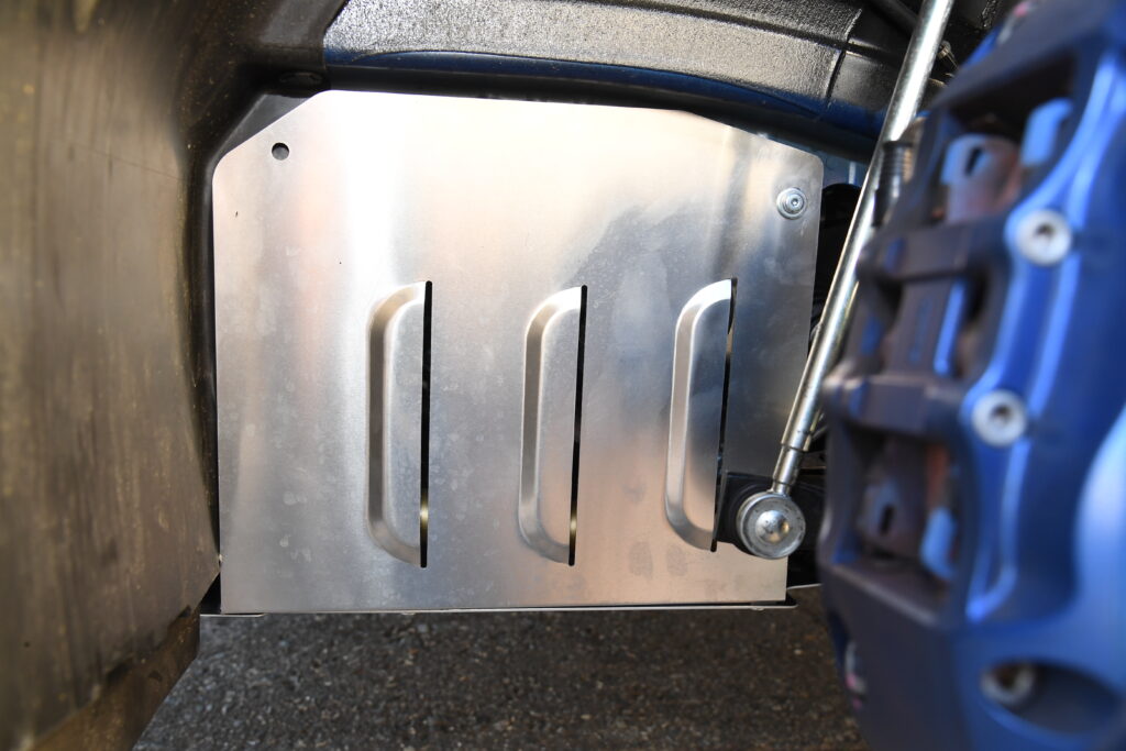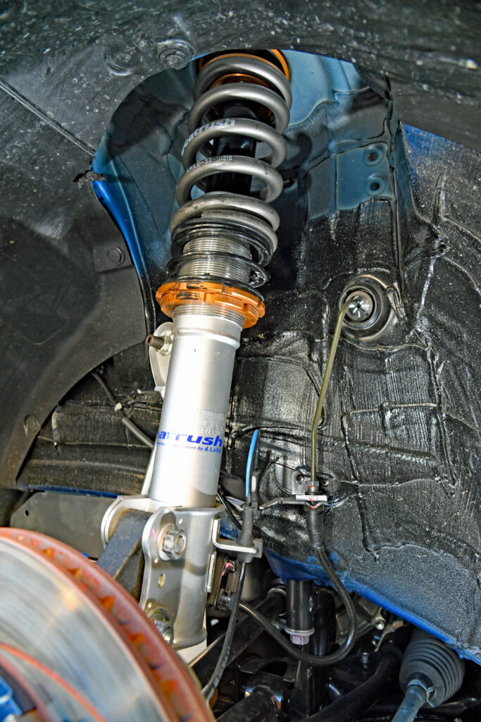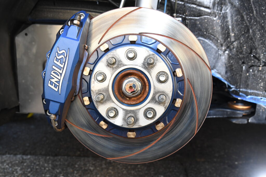 フロントのアンダーカバーをフラットにしたいことからレイルのワンオフ品を備える。ECUはSWKの現車合わせセッテング。タイヤはフロントにRE-12D TYPEAを、リアにA08Bを装着している
