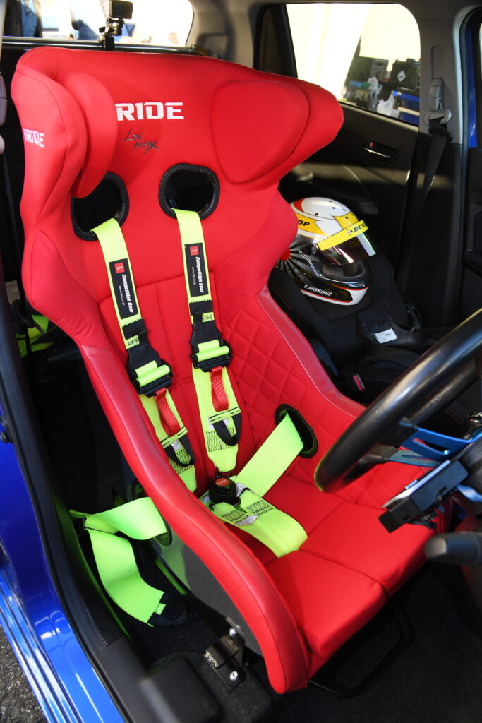 全日本ダートトライアルにドライバーとして参戦する藤田直人代表が、信頼できるパーツを厳選して装着。「大クラッシュしたときに命を守ってくれた」と絶対の信頼を置いているのがブリッドのシートだ。ZC33Sに装備されていたのはXERO RS PLUS。ヘッドガード付きで車検対応のこのモデルは、頭部保護効果が高い。シートレールはセンターが出ていてかつ低いFOタイプだ。