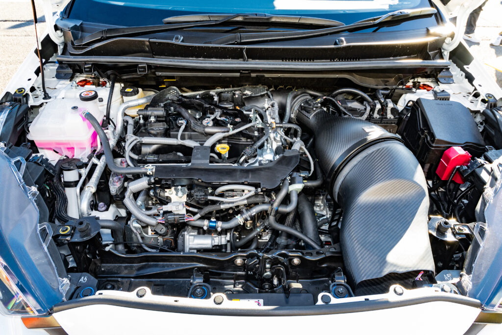 ノウムが以前に製作した2台のGRヤリスのデモカーはMT車だったが、この3台目は初のDAT車。それだけに提案するコンセプトも違う。タイムアタックでの記録よりも、耐久レースやスポーツ走行のセッションで長時間ハイペースを維持して走り続けられることが狙いだ。