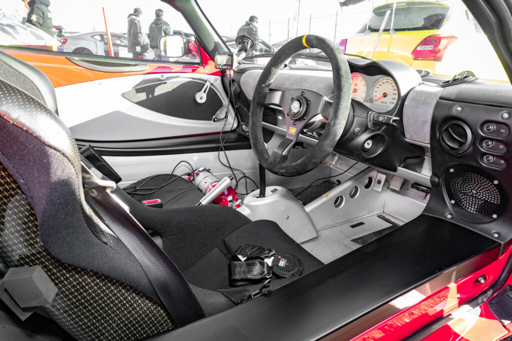 梅田 剛がスーパーバトルの2カ月前に衝動買いしたというエリーゼ。フェイズ2の初期モデルで、116psのローバーエンジンを搭載するモデルだ。