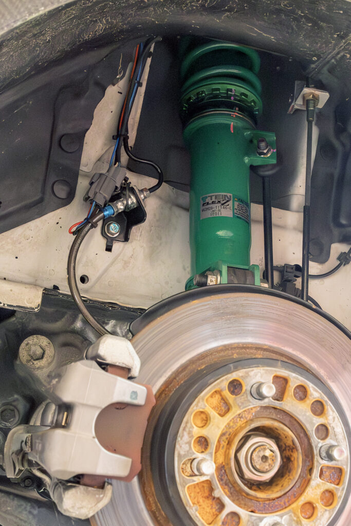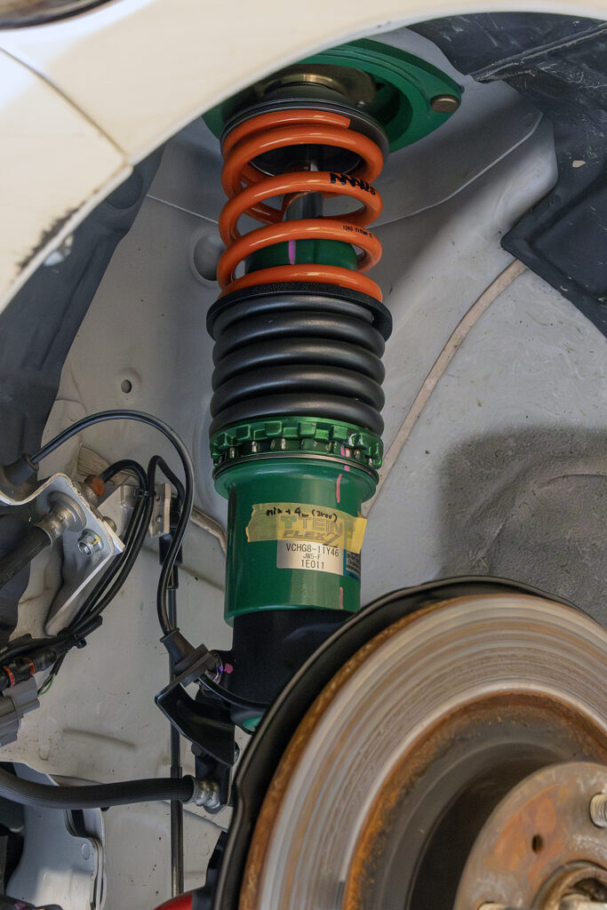 今回はキャスターを寝かせて、ステアリングを大きく切った状態でもキャンバーがポジティブに変化しないセッティングを施してきた。結果として走行フィーリングはかなり向上。軽過ぎる印象だったステアリングに重さが出たことで、操作感がちょうどよくなり、コーナーでもアンダーが出にくくなった。
