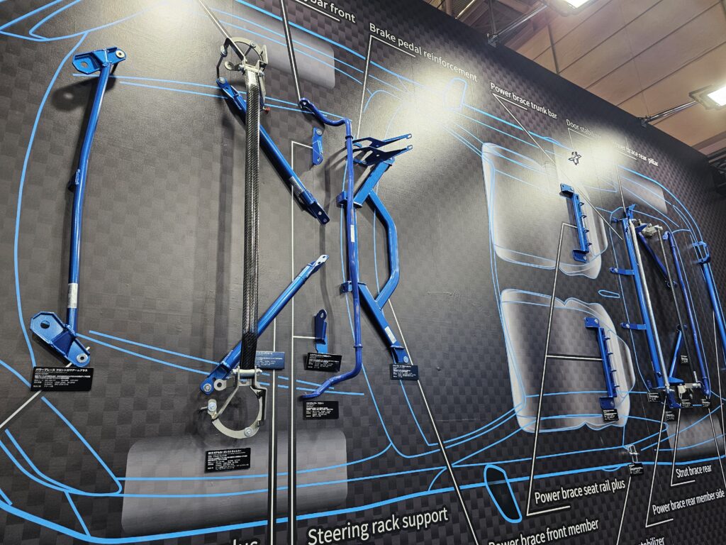 さらに、すでにクスコ製ストラットバーを装備している場合にはバーの交換のみも可能とのこと。すでにGR86/BRZ、VBH WRX S4、VNHレヴォーグ、GRヤリス、GRカローラ用が発売されている。さらに細かく展示車や展示アイテムを見てみよう。