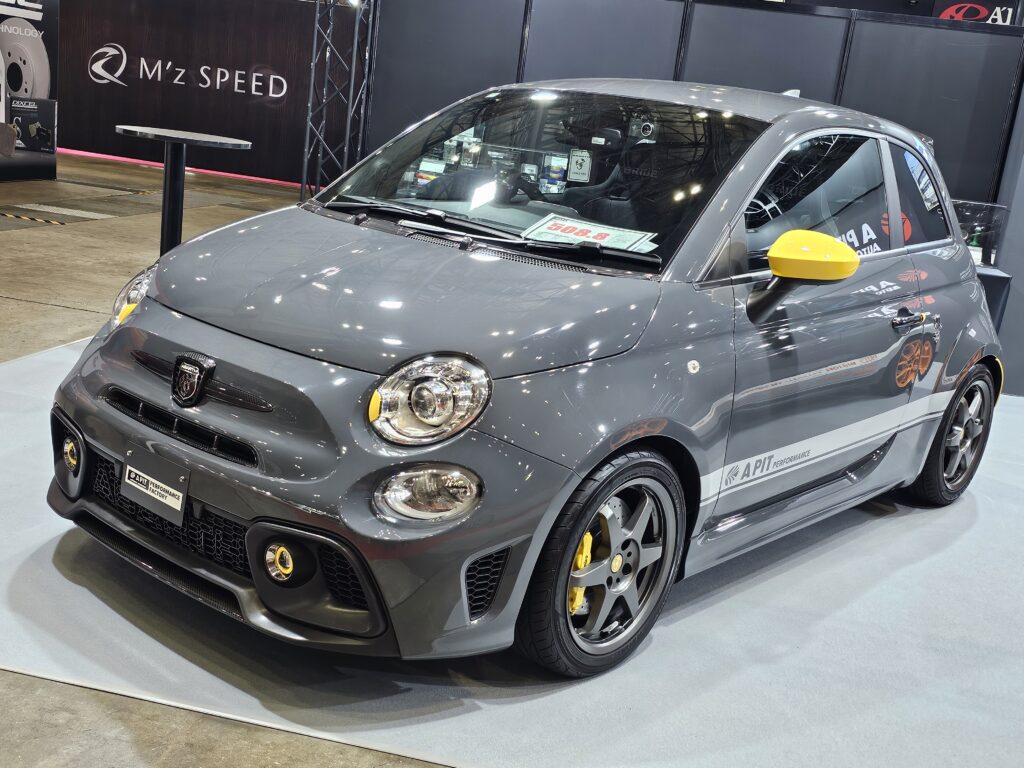 1.4ターボのホットハッチ、アバルト595に、A-PITはオリジナルのリターンキットを装備したBMC製OTAキットやHKS製VIITSマフラーなどを装備。速さを高め、そのうえでラ・ヴォーノ製オーバーフェンダーや内装パネルの革張りなどによる『スモールエレガントスポーツ』を具現化。車高調キットはHKS製。