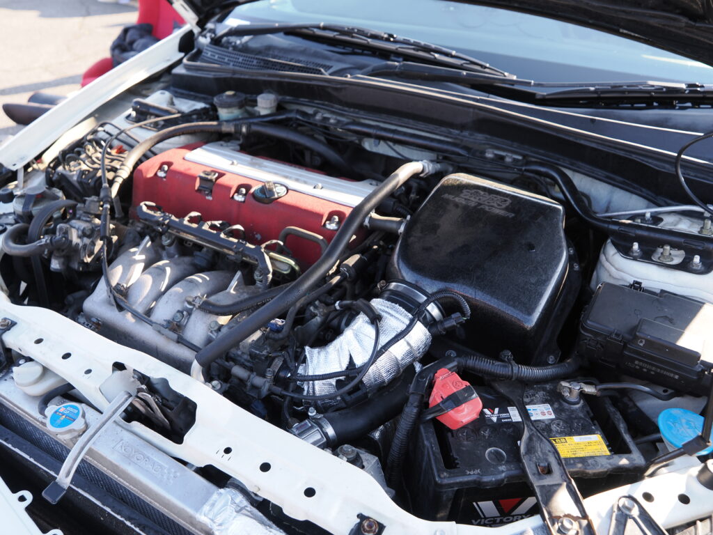 DC5はストリート仕様の超ライトチューン。変更点は無限製エアクリーナーと排気系のみ。エンジン、トランスミッション、さらにはECUまでノーマルだ。