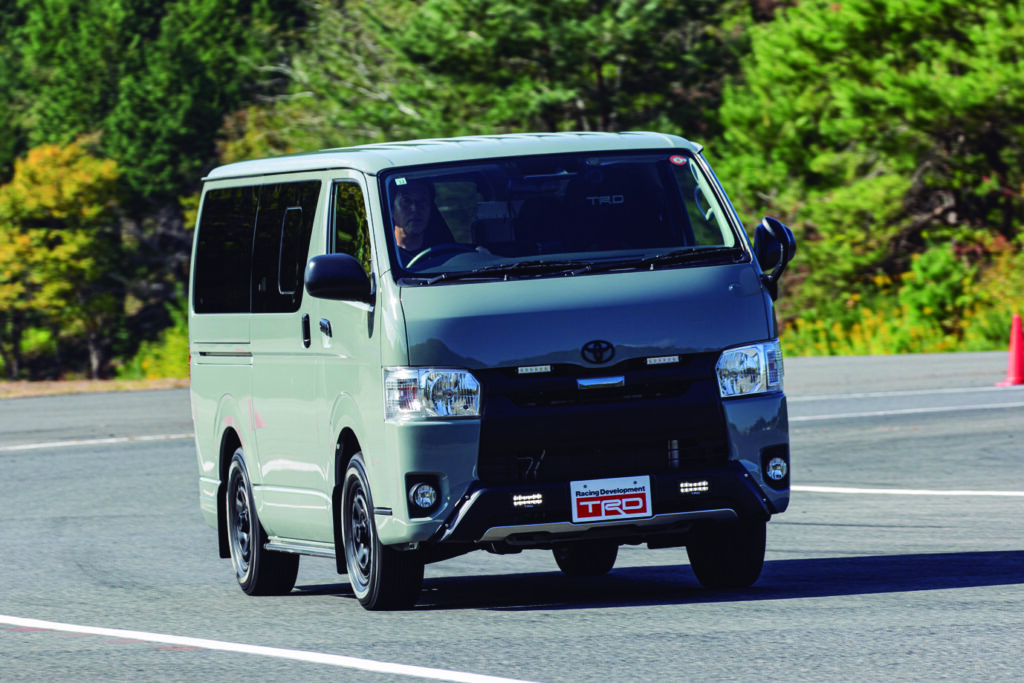 Kaiser LockerデファレンシャルやKINF SHOCKSダンパーなど、TRDが吟味した強化パーツを装着したハイエース。力強く、軽快な走りを披露する