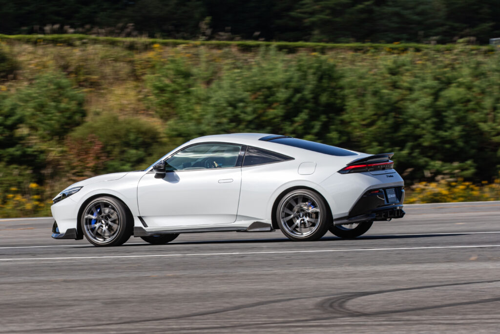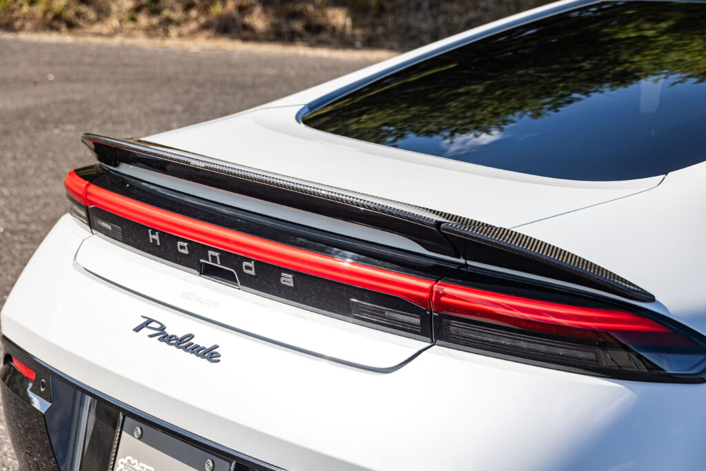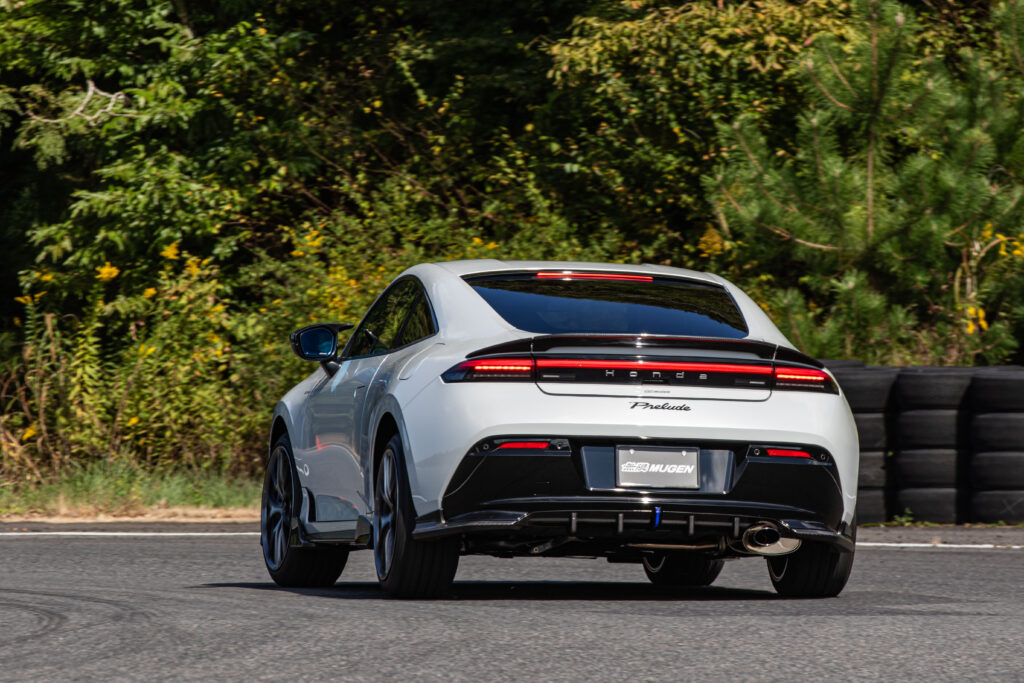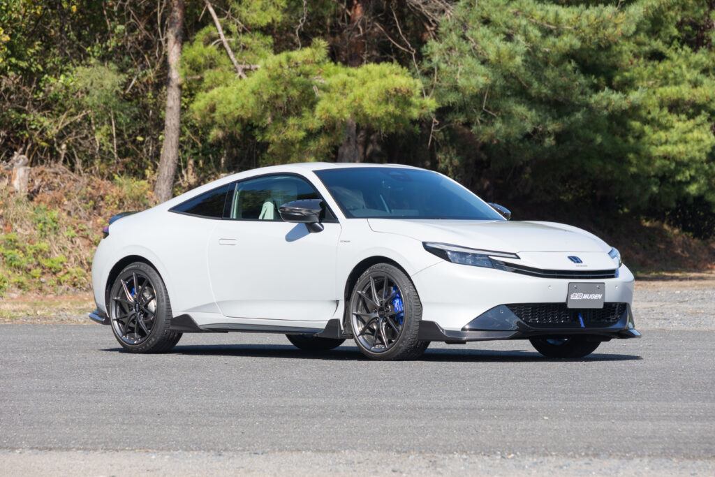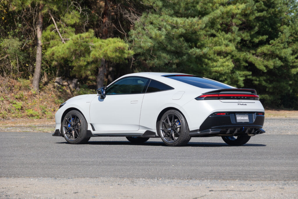 無限はプレリュードを速攻チューニング。スポーティー感と疾走感を表現したというドライカーボンエアロは、美しい純正フォルムを損ねることなく存在感を主張できるのが魅力。空力的な配慮も十分にされていることはいうまでもない。