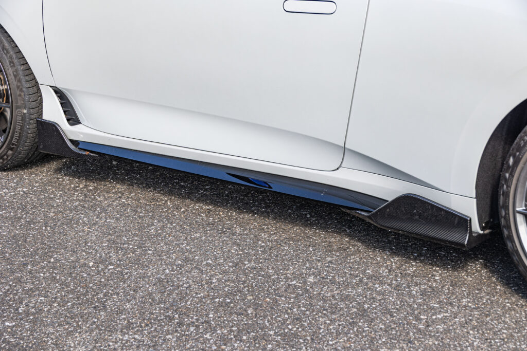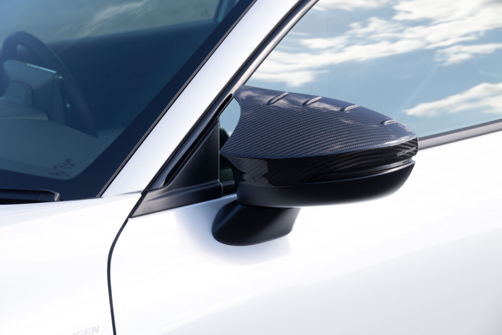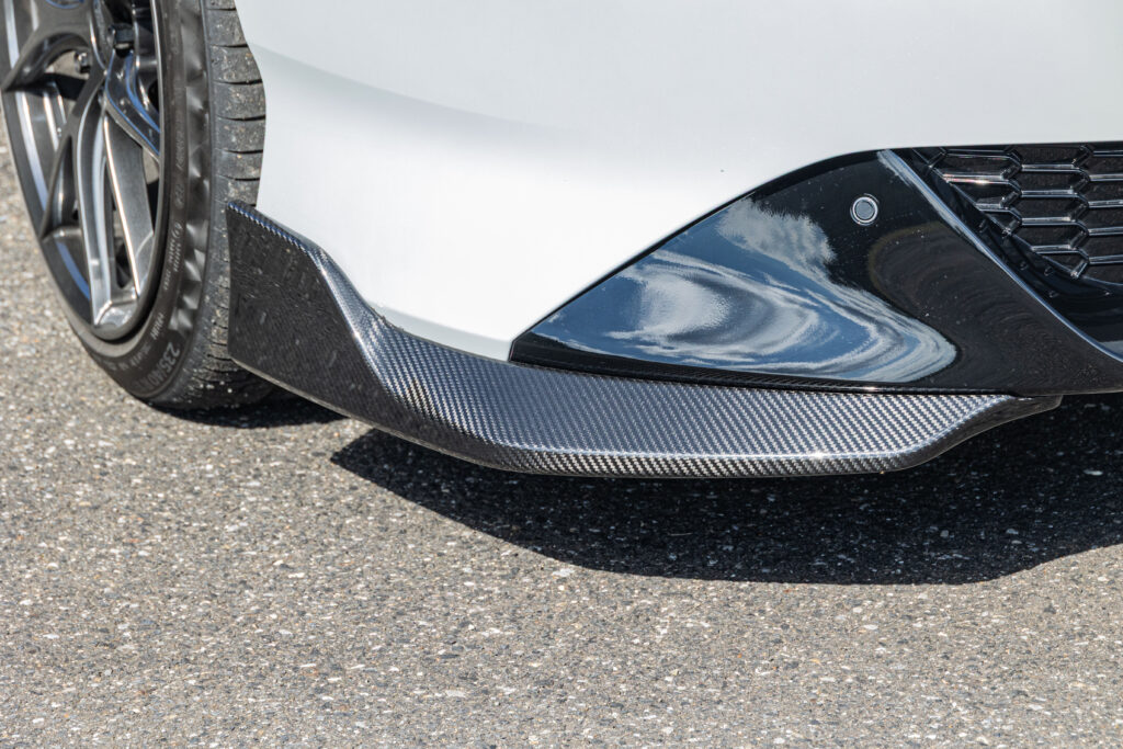 エアロは純正に追加するタイプの小ぶりなデザインで、さり気なくドレスアップできる。純正19インチタイヤに組み合せた鍛造ホイール『FR10』やレーシングナットもオリジナル。さらにフロントには不快な振動や騒音を解消するパフォーマンスバーを追加するなど、ハンドリングと快適性を両立するカスタムが施された。