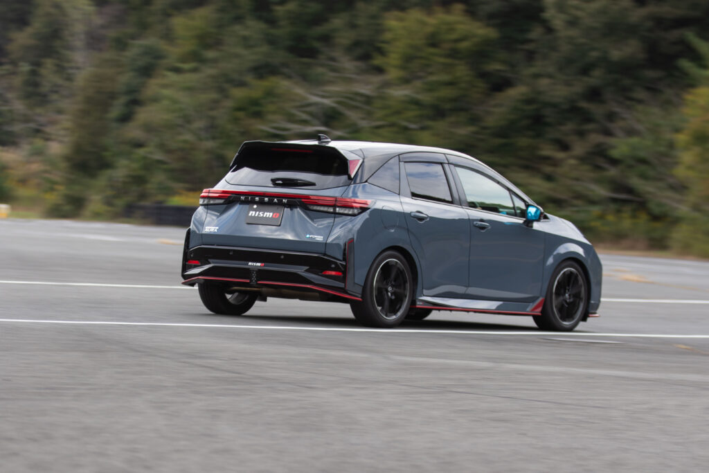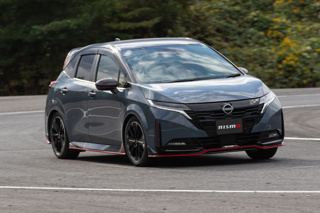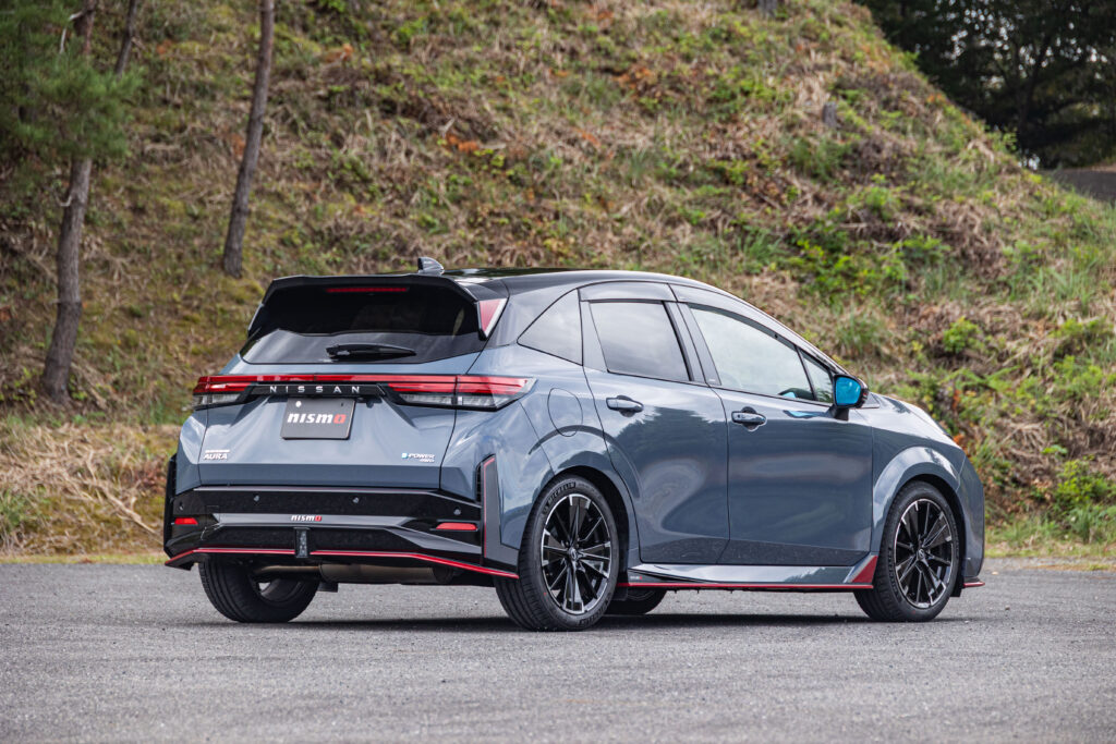 ニスモが手掛けたオーラNISMOのトピックは、スポーツリセッティングTYPE-2の導入。VCMチューンにより6つのドライブモード特性を変更するこのメニューにより、モーター出力の向上に加え、前後モーターの出力配分を緻密に制御。安全かつリニアな走りを実現している。