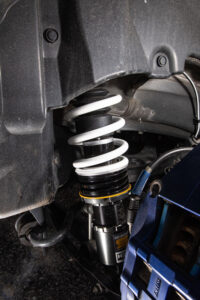 全長調整タイプの単筒式(ストラットはかつ倒立式)で減衰力30段階調整機構付き。オーバーホールや仕様変更可能で、3年6万kmの保証もついてくる。