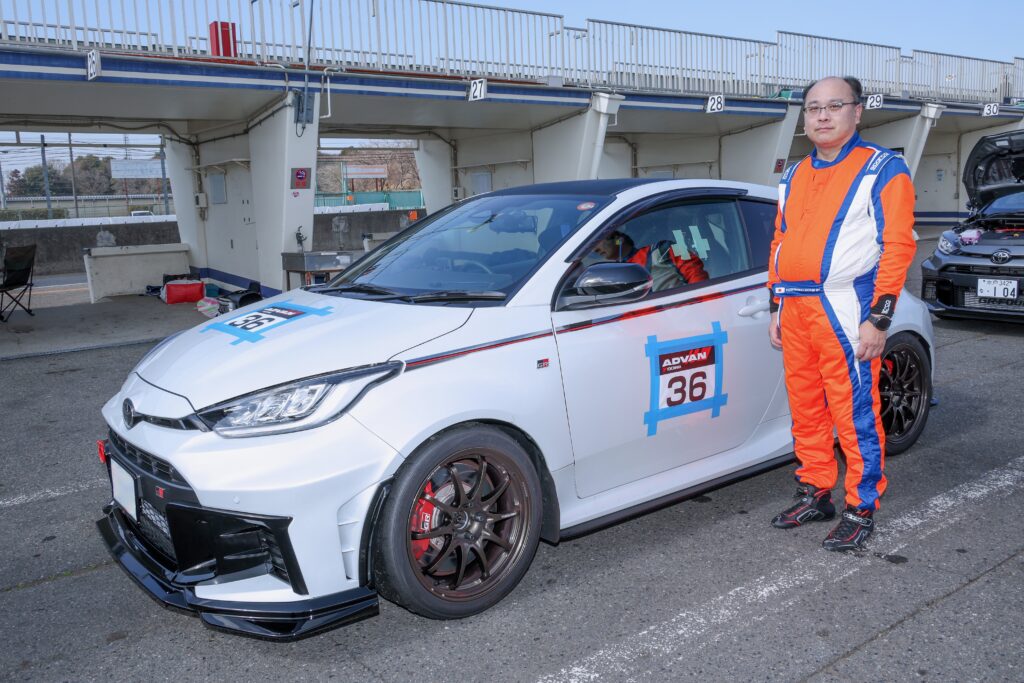 最終コーナーも、このGRヤリスでは走行が初めてだったので、進入に注目しました。久保講師の進入速度は140㎞/hを超えるレベルで、ブレーキは踏まずにアクセルOFFだけ。コーナーの中の速度は、だいたい130㎞/h。タイヤを滑らせながら、立ち上がっていた。自身では、そのマイナス10㎞/hを目標に置きました。筑波全体のスピードレンジも把握でき、実践してラップタイムが3秒くらい縮まったかもしれません。とても満足です」