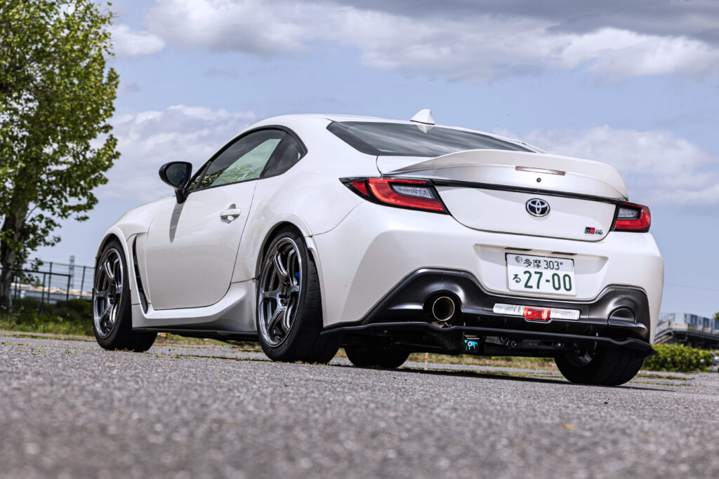 編集長つかポンのGR86にA-RM Φ60を装着。右側の切り欠き部分を埋めるマフラーガーニッシュ(税込み3万5200円)も備えた。日常域は静かだが、ほどよく軽やかでスポーティな音色を奏でる。マフラー自体の軽さも出足や加速やコーナリング時に寄与。筑波コース1000 ではレーシングドライバーの蘇武喜和が試乗。ピックアップのよさ、パワーバンドの広さを明確に感じ取っている。