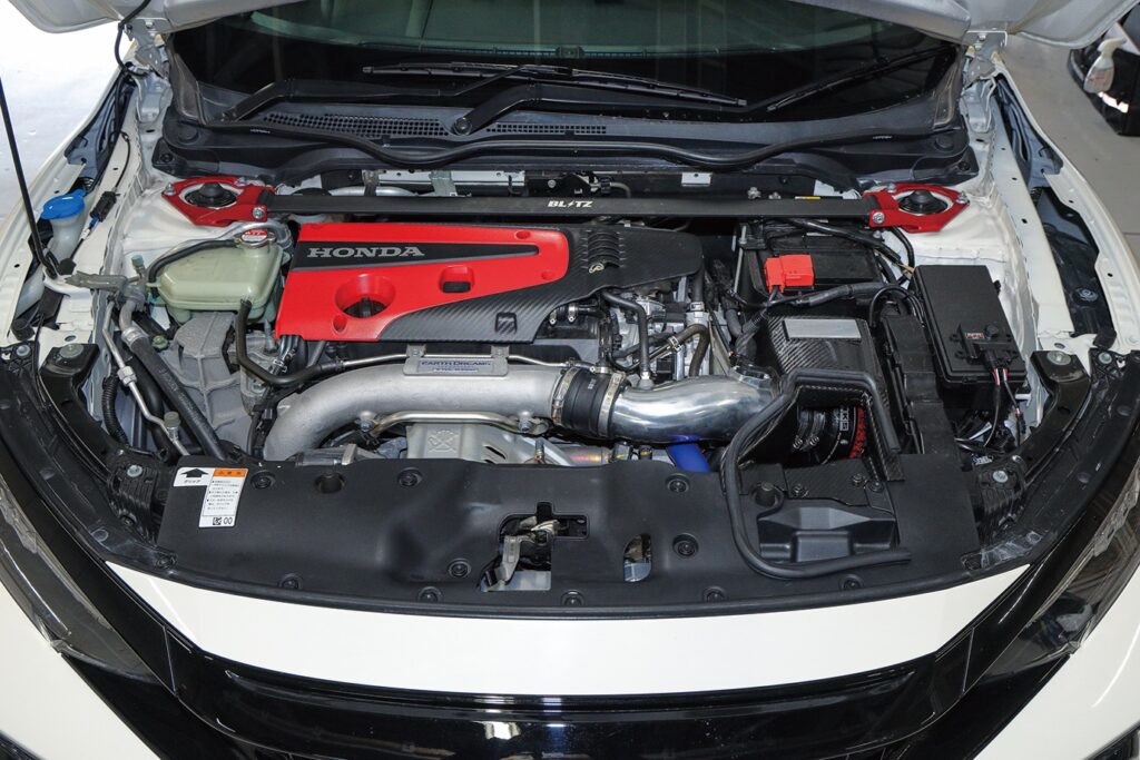 FK8 はサーキット走行時の水温上昇を抑えたい。冷却系はラジエーターの容量アップに加え、オイルクーラーも装着。オーバーヒートを気にせず、周回を重ねることができる。