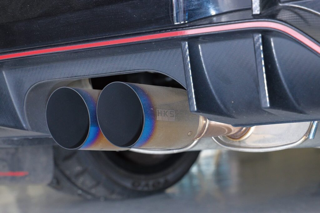 吸排気はHKS のコールドインテークとリーガマックスプレミアムマフラーで効率アップ。さらにECU 書き換えを施している。