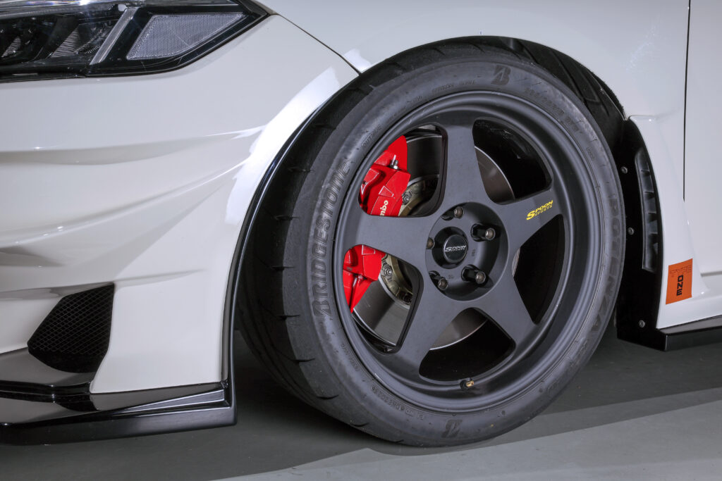 スプーン伝統のデザインであるホイールがSW388。PCD120 のFL5 には18 × 9.5J Inset40と19 ×9.5J Inset45、そして新たに18×10J のInset40 と50がラインアップされた。
