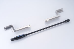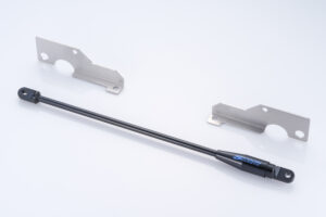 装着には前後バンパーを外して、フレームに取り付ける。このモーションコントロールビームは車体が受けるGや路面からの入力に応じて、ダンパーがボディの捩れを制御。コーナリング性能や快適性などに寄与する。とくにフロントは、FL5 ではフレームのエンドが開口し、左右がつながっていない。テストでは開口部に角パイプを組み付け、ハンドリングの変化から、ベストな追加位置が見きわめられた。フレーム開口部の補強も兼ねる構造という。前後セットで14 万3000 円。