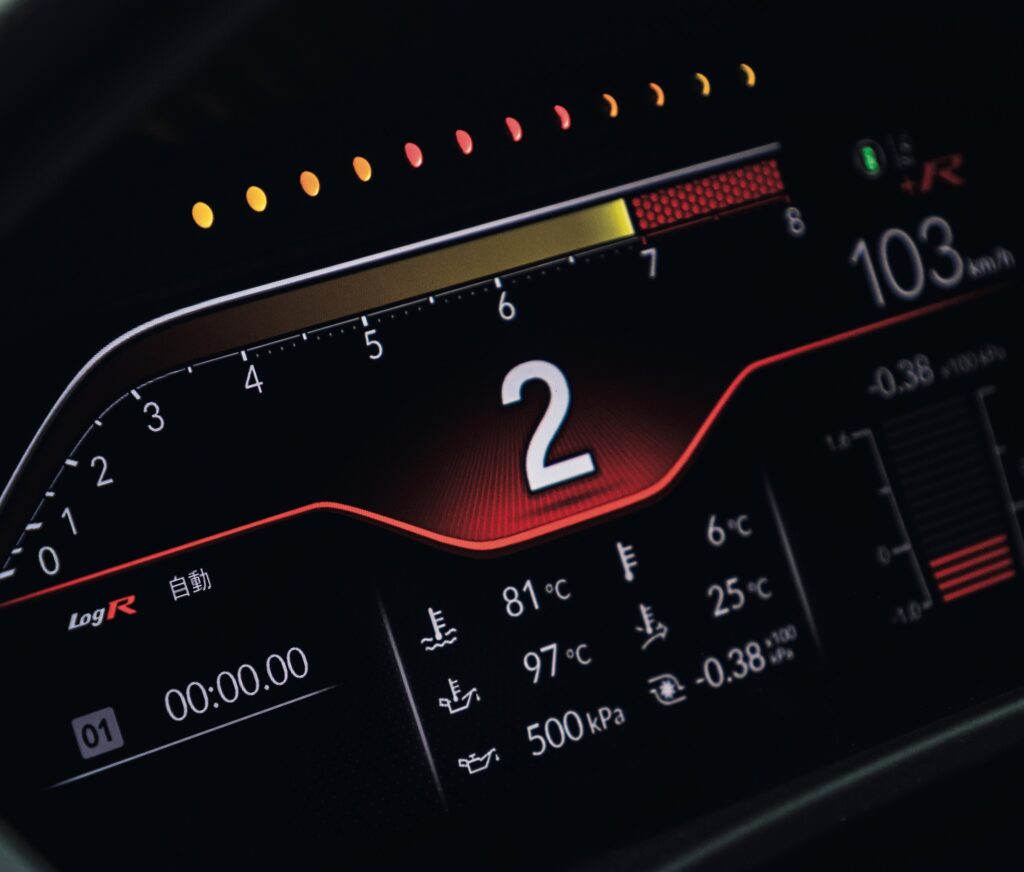 FL5シビック タイプRはセンターメーターなどに油温を表示できます。アフターの追加メーターではなく、油温はこの数値での話です。