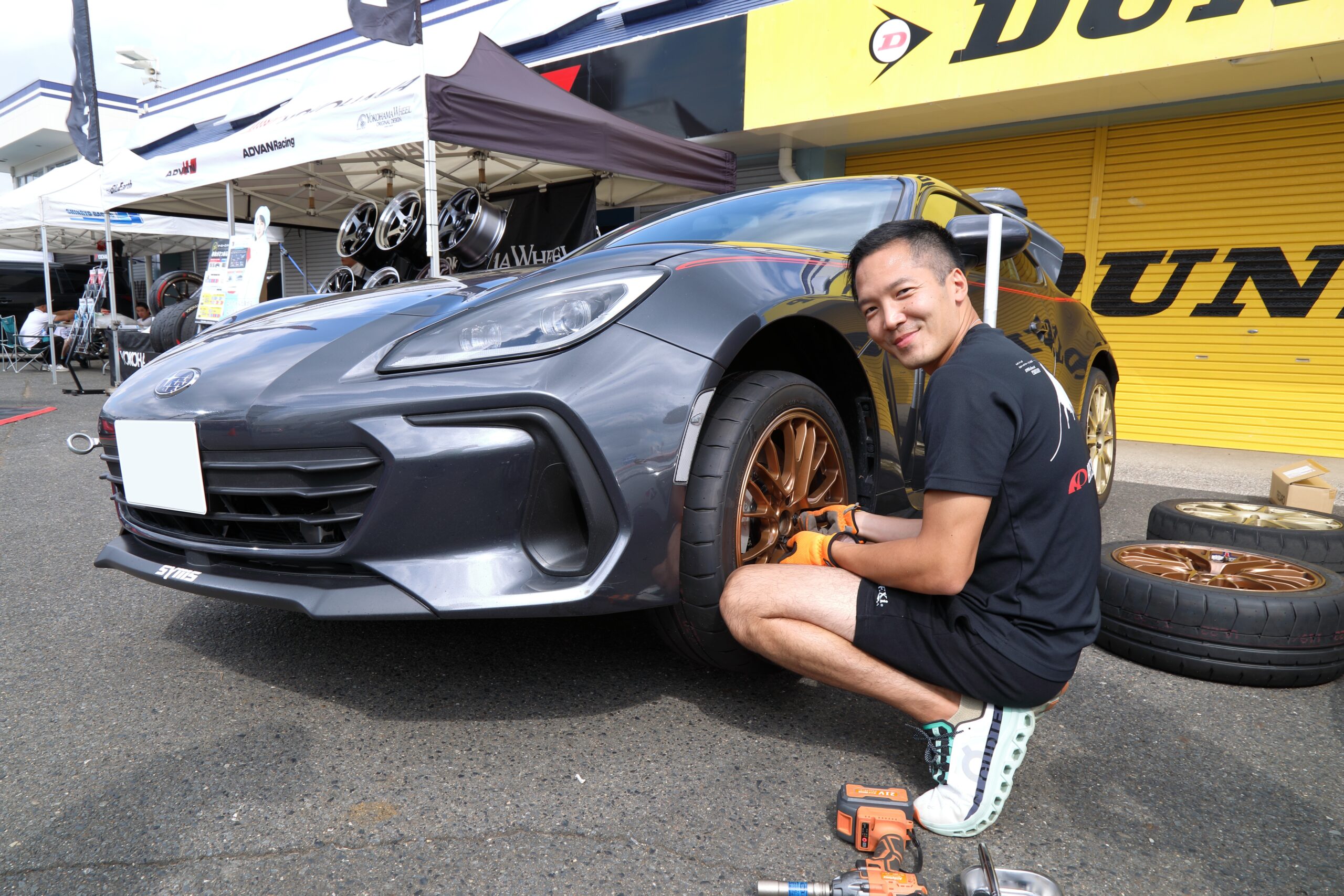 自身がプロデュースする『Takutyproject』のエアロなどを装着したBRZを持ち込んだ井口卓人。2021年にスーパーGTでチャンピオンを獲得した記念に購入したマイカーで、お気に入りはフルエアロの外装と自身のヘルメットをモチーフにして張られたオリジナルの内装だ。