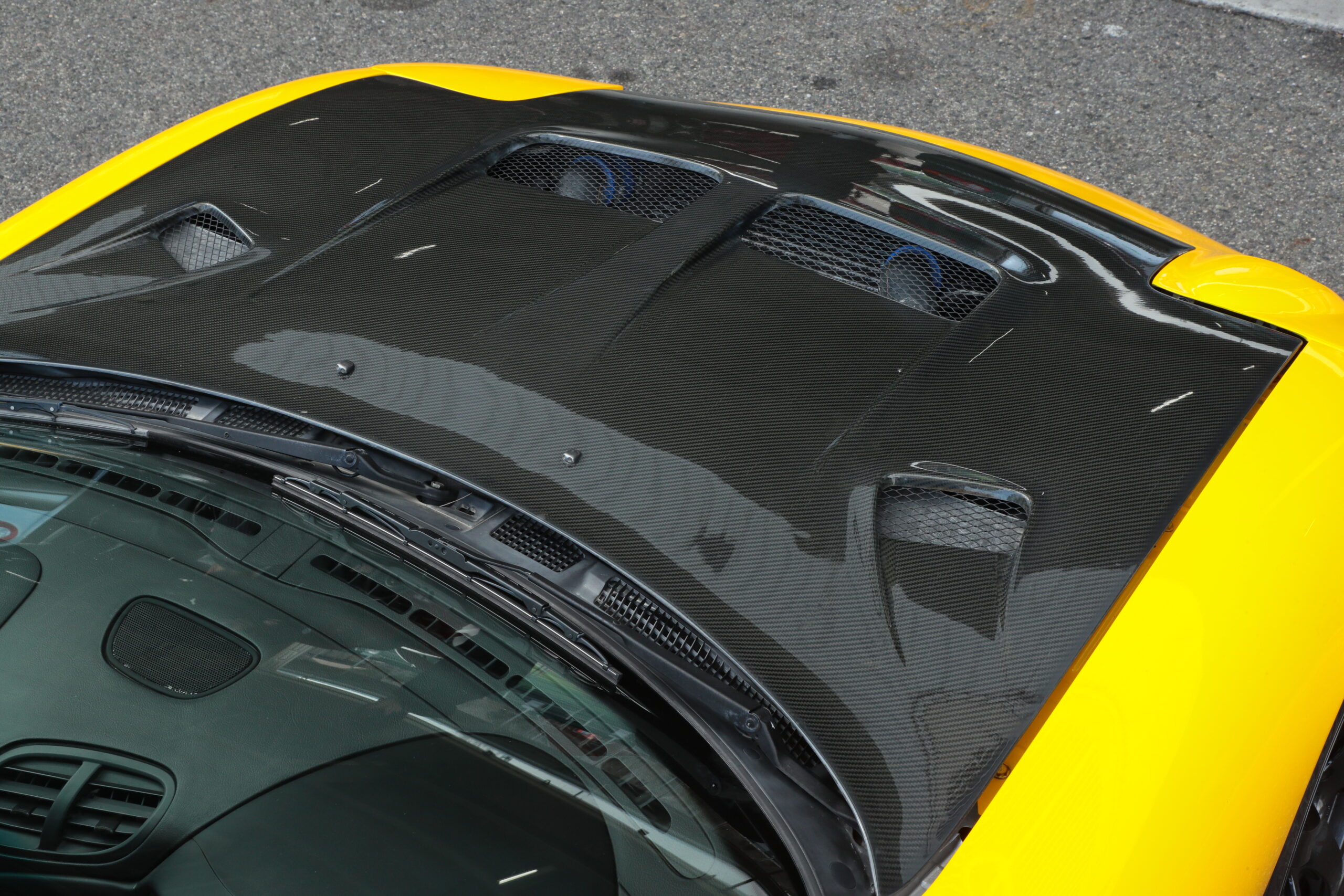 熱対策を重視する『ハイパーストリート』の思想を象徴するRE雨宮クーリングボンネット。安定した冷却性能を確保。ルックスにも貢献