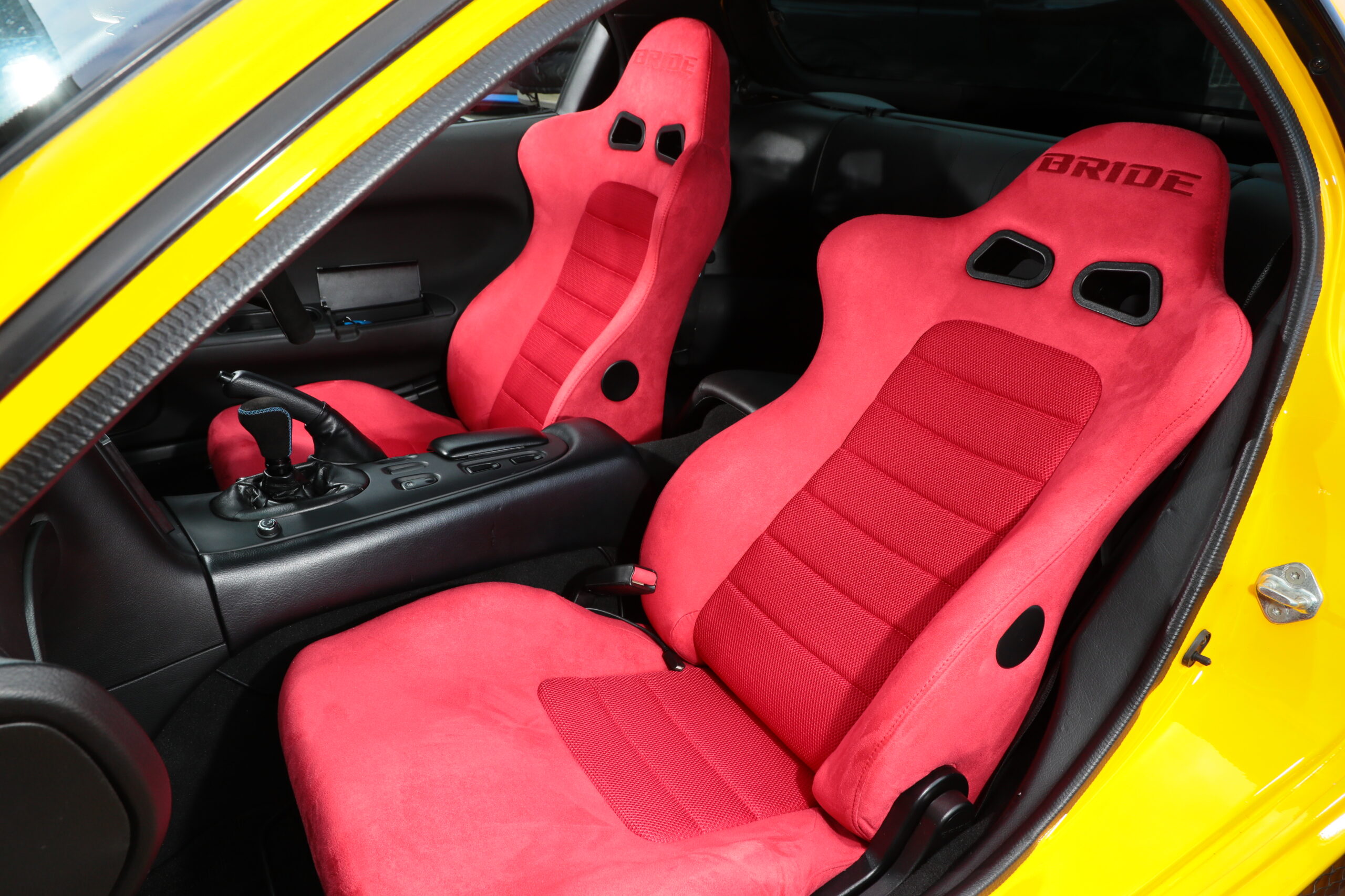 BRIDEのEUROSTERⅡはリクライニング機能を備えたコンフォートスポーツシートで、シートヒーター付きを装着