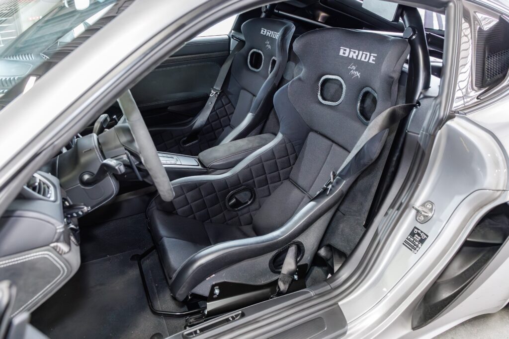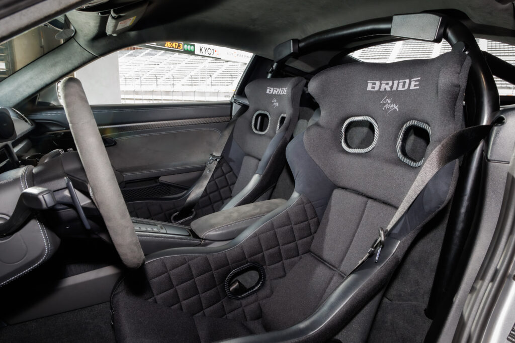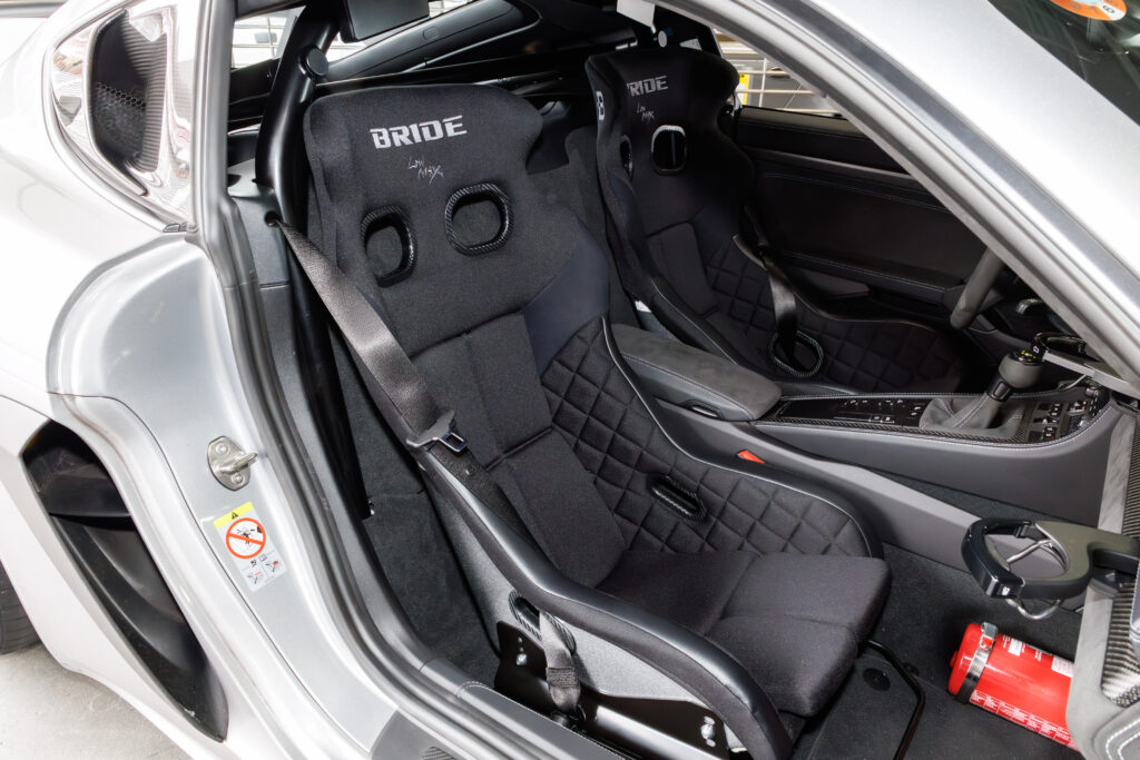 サーキット走行をたっぷりと視野に入れてつくられたケイマンGT4 RSには、高性能な純正シートが備わっている。しかし、より適したドライビングポジション、インフォメーションの高さ、安心できる包まれ感などを得るための提案がこちら! ブリッドのヘッドガード付きフルバケット、XERO(ゼロ)シリーズへの交換だ。