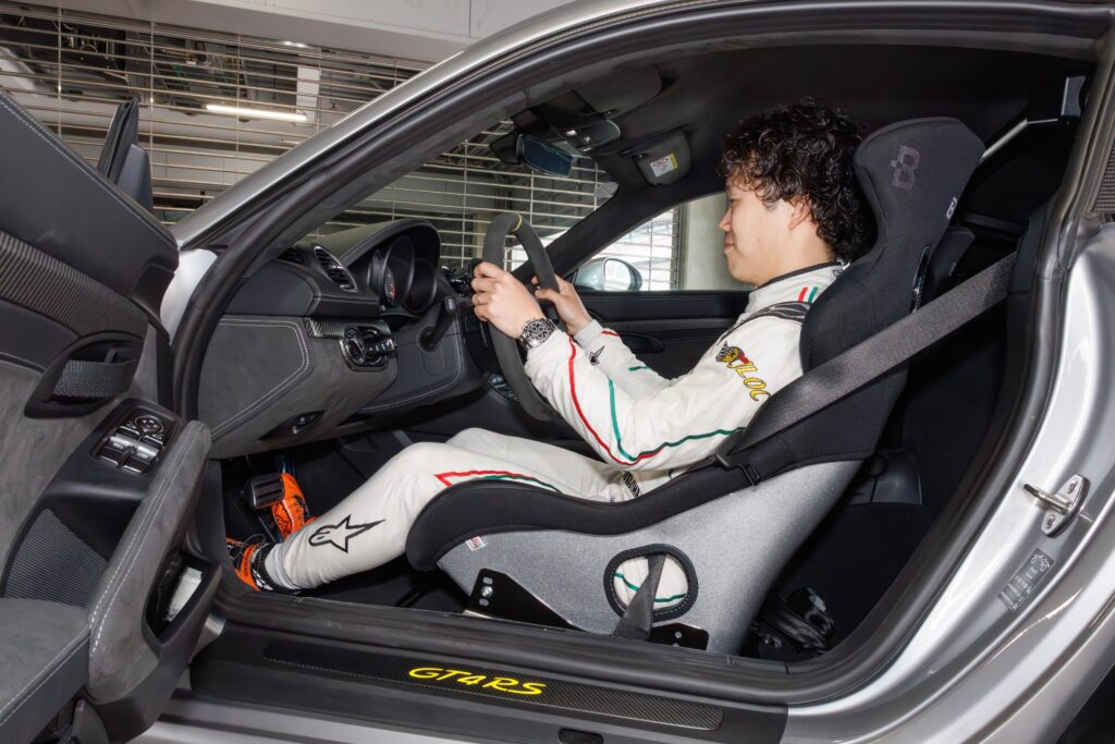 コーナリングでは脇腹付近のサポートがしっかりしていて、Gに対してのホールド性がとても高い。切り返すコーナーでも体がブレず、ケイマンGT4 RSの強烈な加速力にもラクに耐えられる。ショルダーの形状からステアリング操作も引っ掛かることなく、スムーズにできる、などのアドバンテージも感じました。理想のドライビング環境を得るにはおススメです。